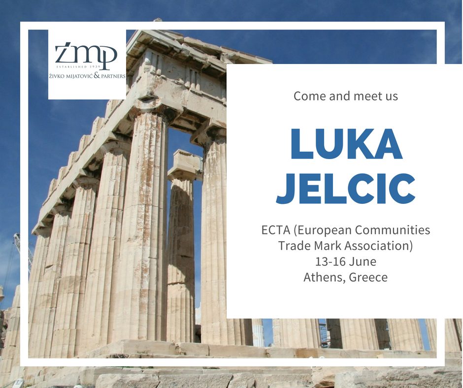 Luka Jelčić, from the ZMP Croatian Office, will be participating in the 2018 European Communities Trade Mark Association (ECTA) Annual Conference which will take place Wednesday 13th- Saturday 16th June 2018 in Athens, Greece.